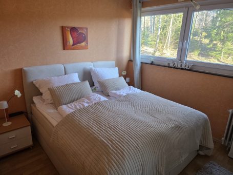 Ein weiteres kleines Schlafzimmer (mit 2. TV) bietet sich für eine dritte Person an. Hier finden Sie ein komfortables Boxspringbett für eine Person, während die bequeme Doppelschlafcouch im Wohnzimmer eine gute Schlafmöglichkeit für zwei weitere Personen ist.